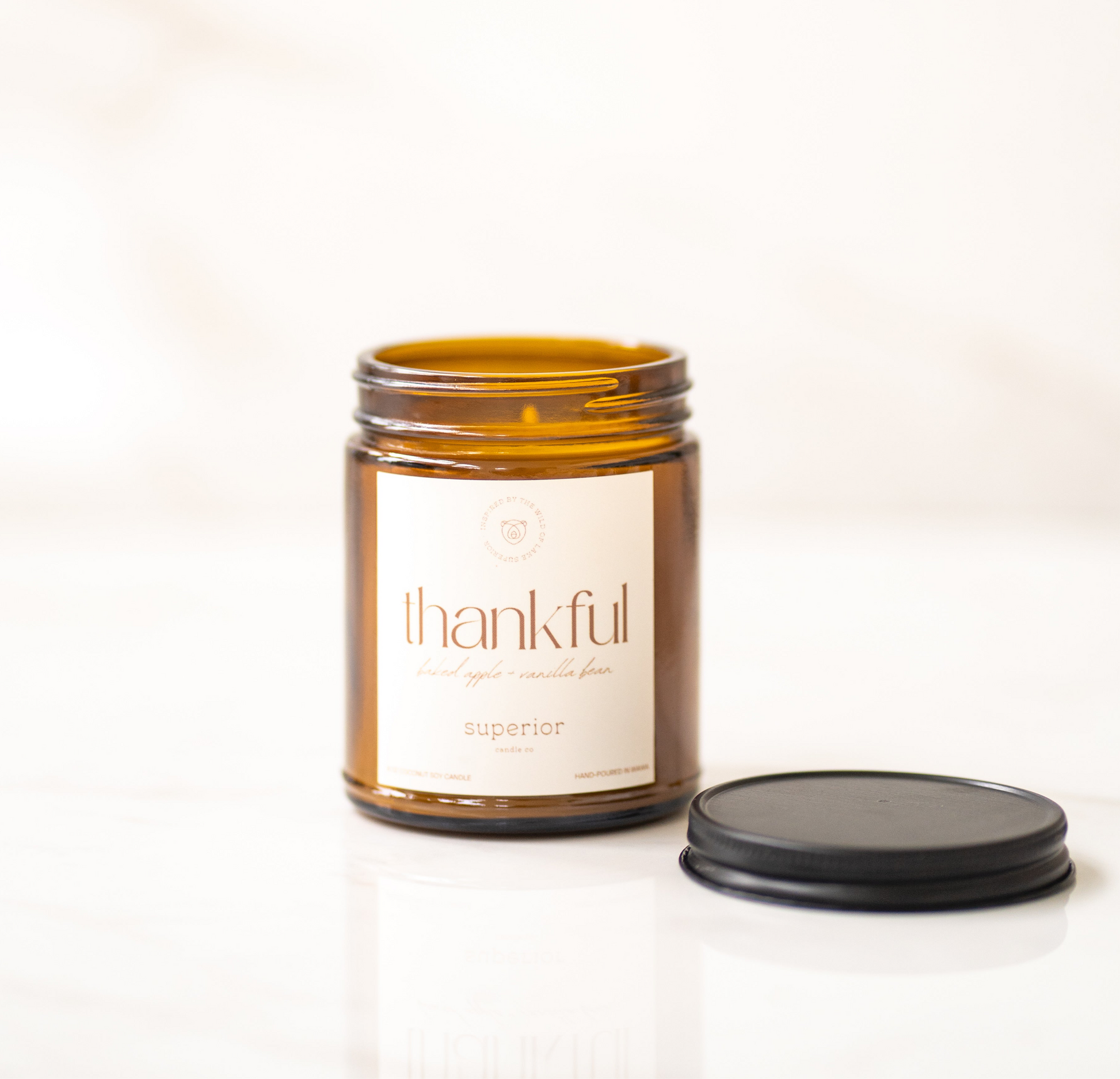 Wrap your home in the heartwarming scent of fall. With notes of baked apples, vanilla bean, and cinnamon sugar nutmeg, Thankful captures the cozy essence of a fresh apple crumble.