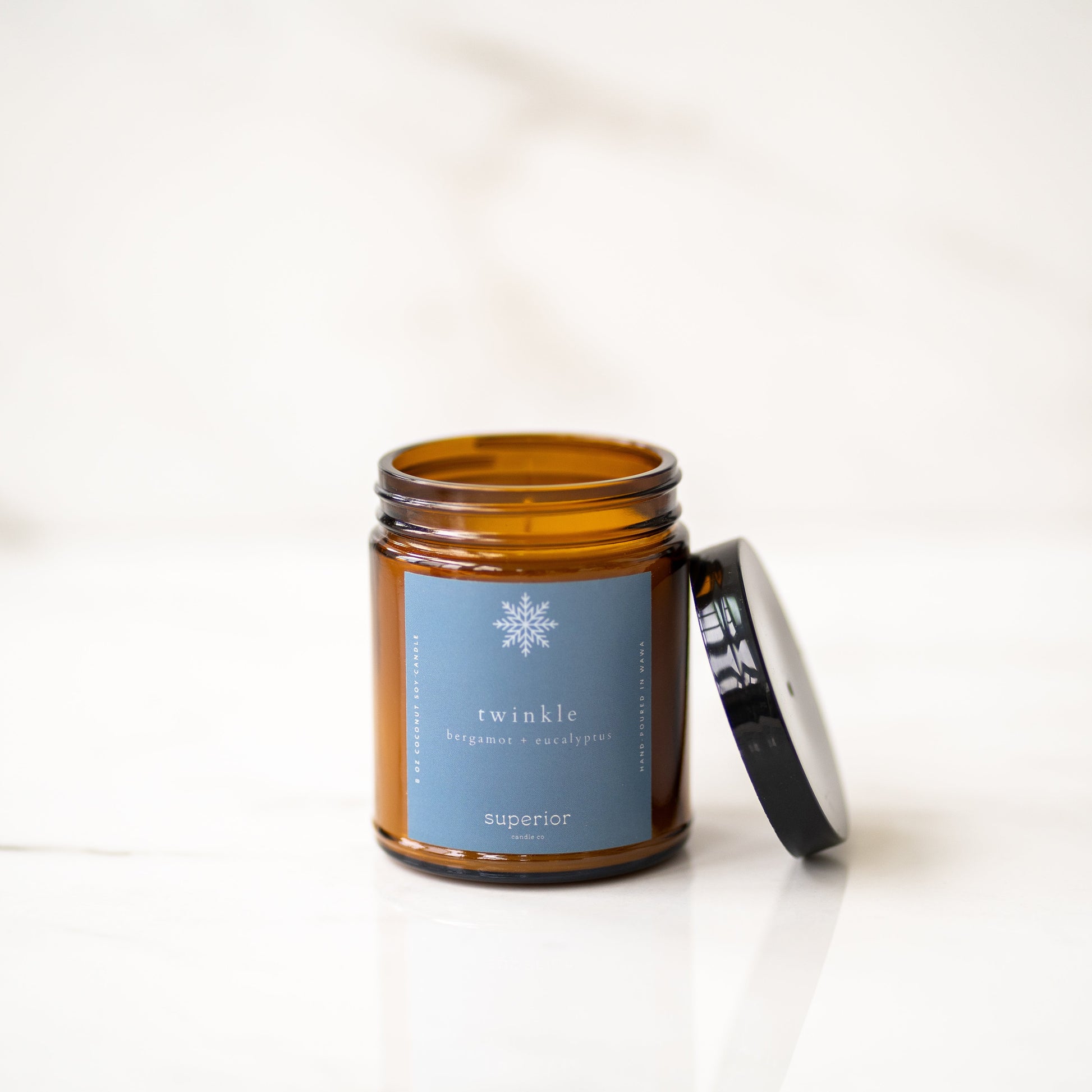 Step into a serene winter wonderland with Twinkle, a candle that captures the essence of a snowy night filled with both frosty freshness and comforting warmth.